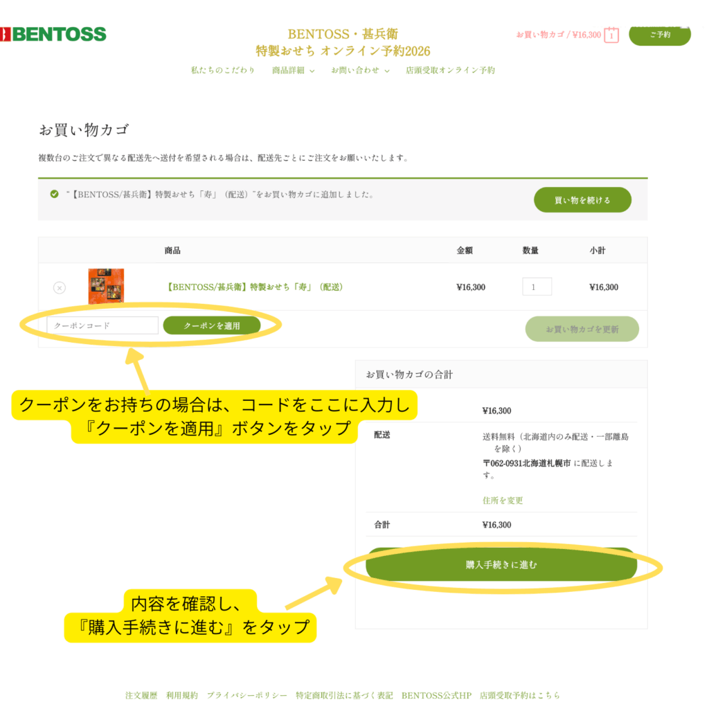 2. お買い物カゴでクーポン適用