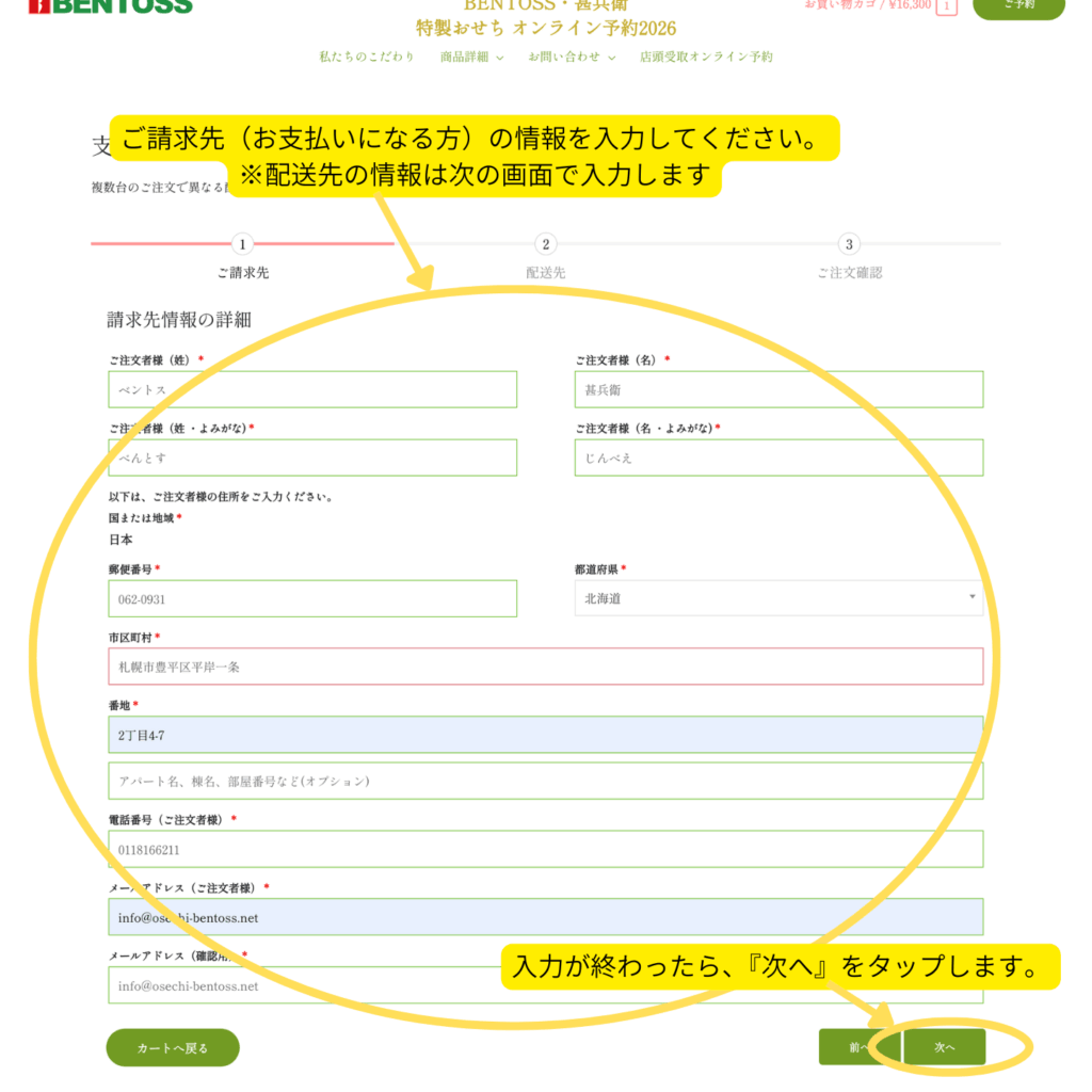 3. お客様情報(ご請求先)の入力