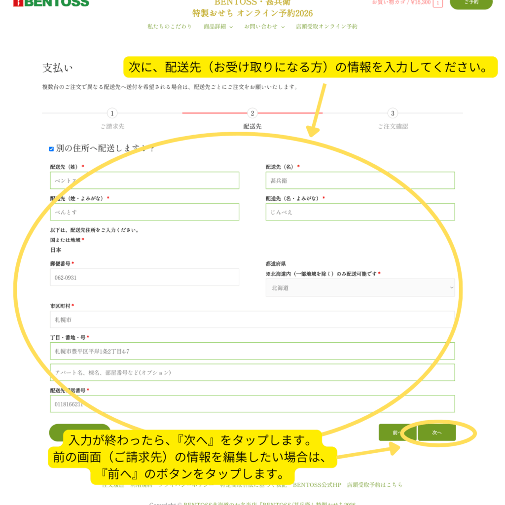- 次に、配送先(お受け取りになる方)の情報を入力してください。