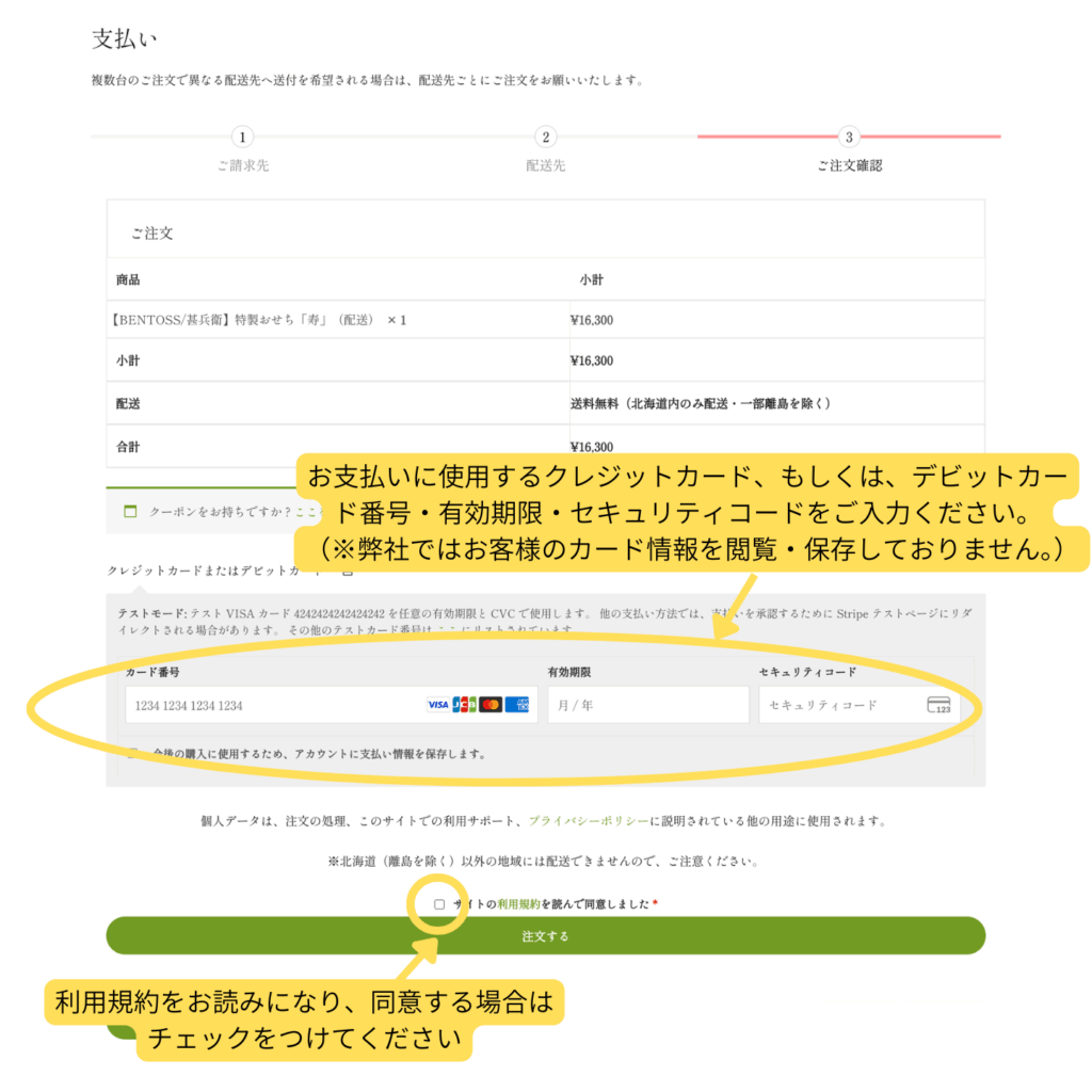 - お支払い情報を入力・利用規約の確認と同意